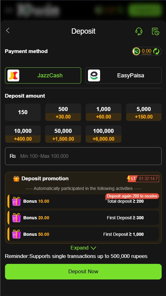 - Fast Deposits and Withdrawals – Payments through Easypaisa, JazzCash, or a bank are quick and secure.