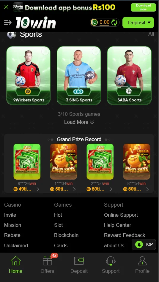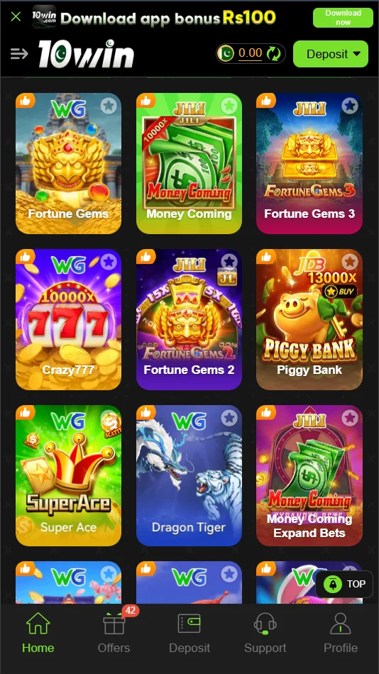 The 10win Game supports Easypaisa, JazzCash, and bank transfers. Deposits and withdrawals are fast, secure, and easy to use for all players.